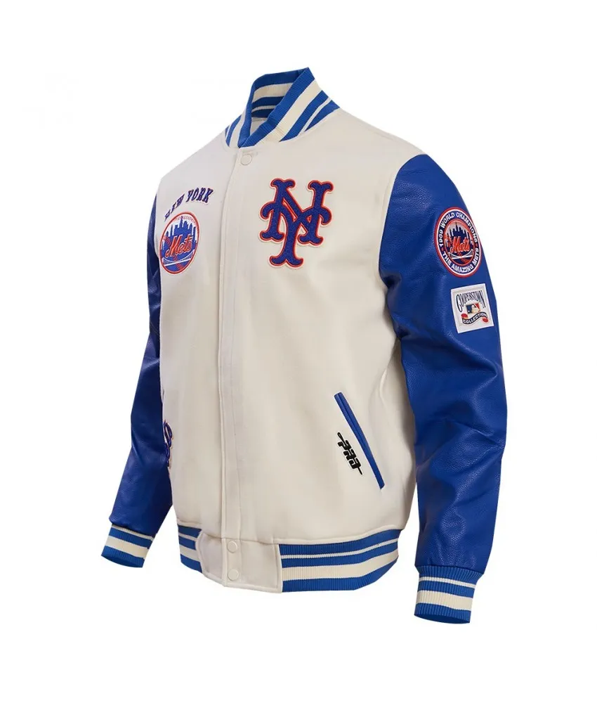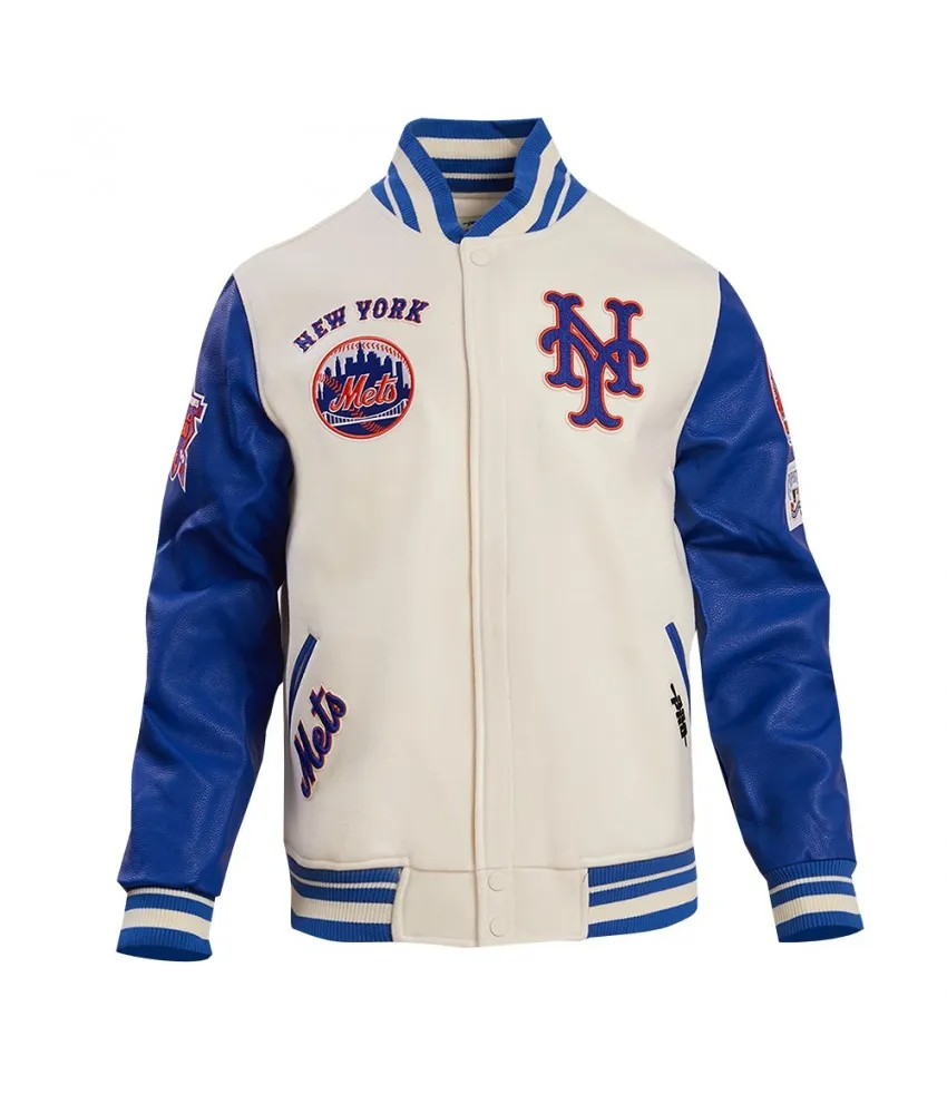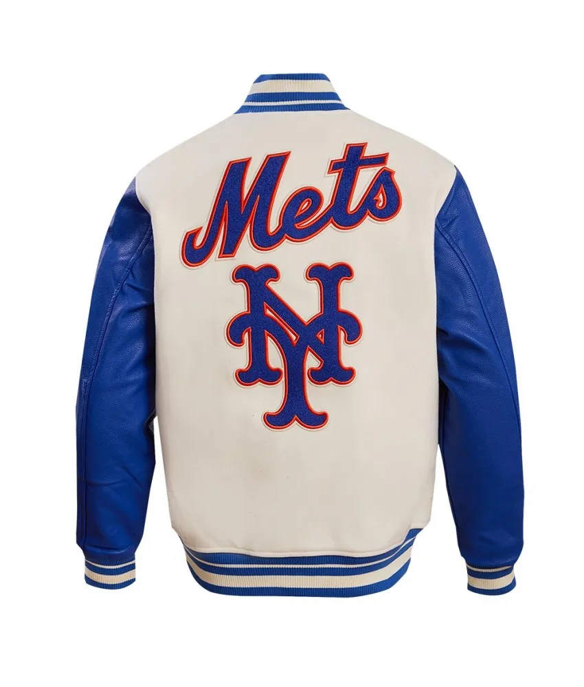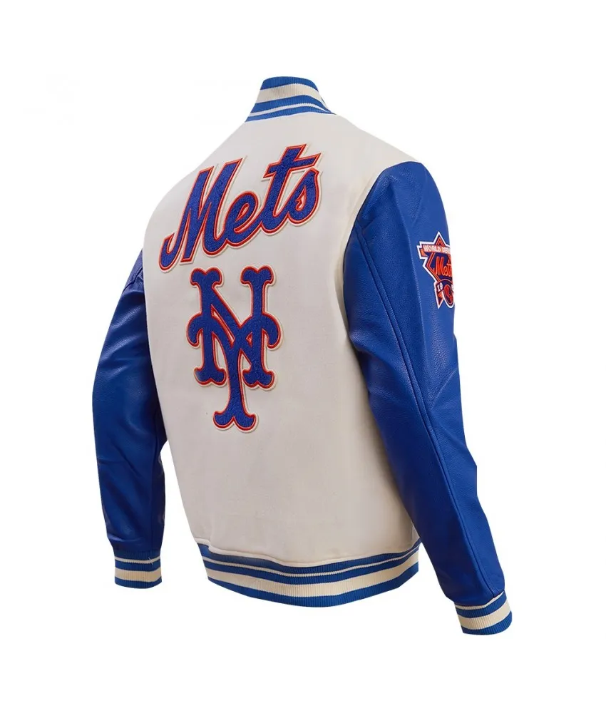 New York Mets Retro Classic Off White & Blue Varsity Jacket