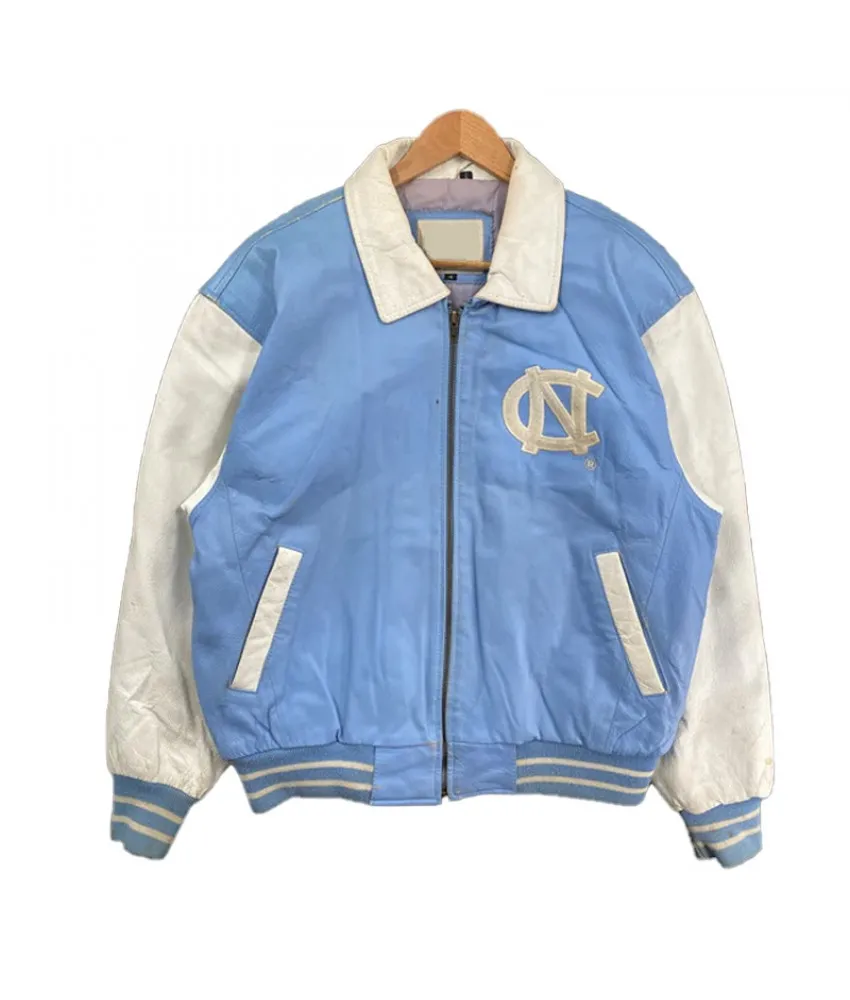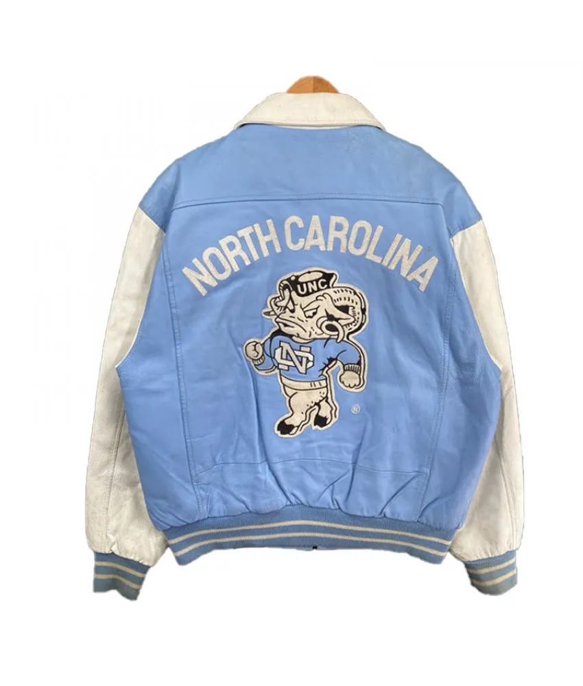 Tags: North Carolina Jacket Light Blue Varsity White Leather Jacket College Varsity Coat Retro Style Jacket Light Blue and White Varsity North Carolina Leather Jacket Vintage College Coat Custom Varsity Wear Stylish Leather Jacket