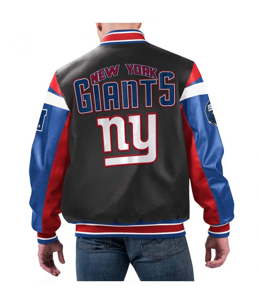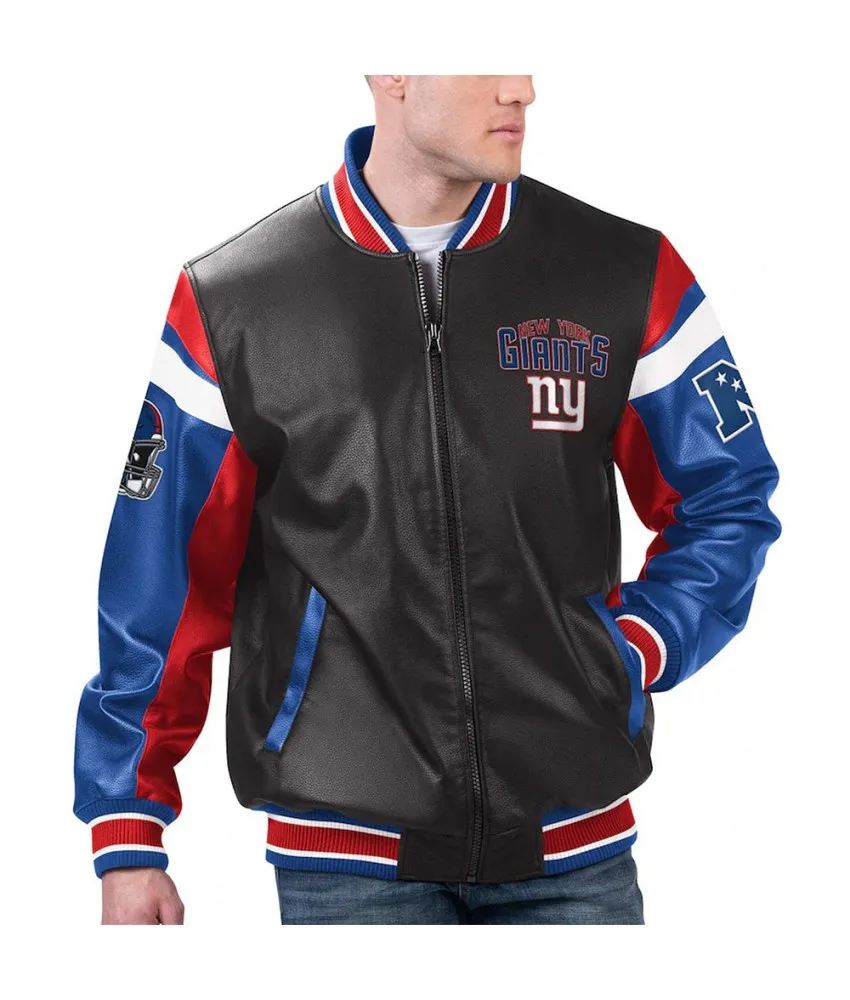 NY Giants Black Varsity Full-Zip Leather Jacket