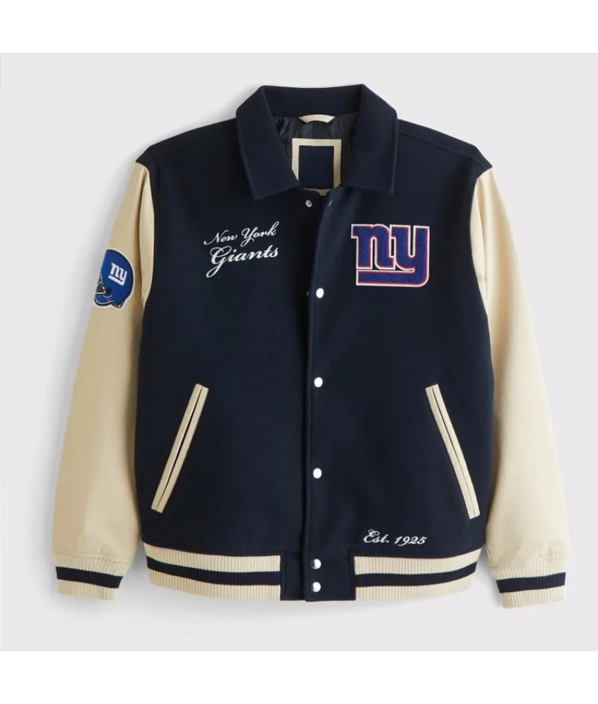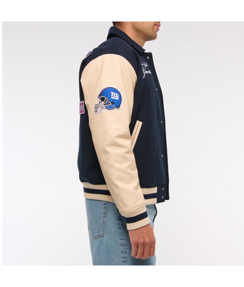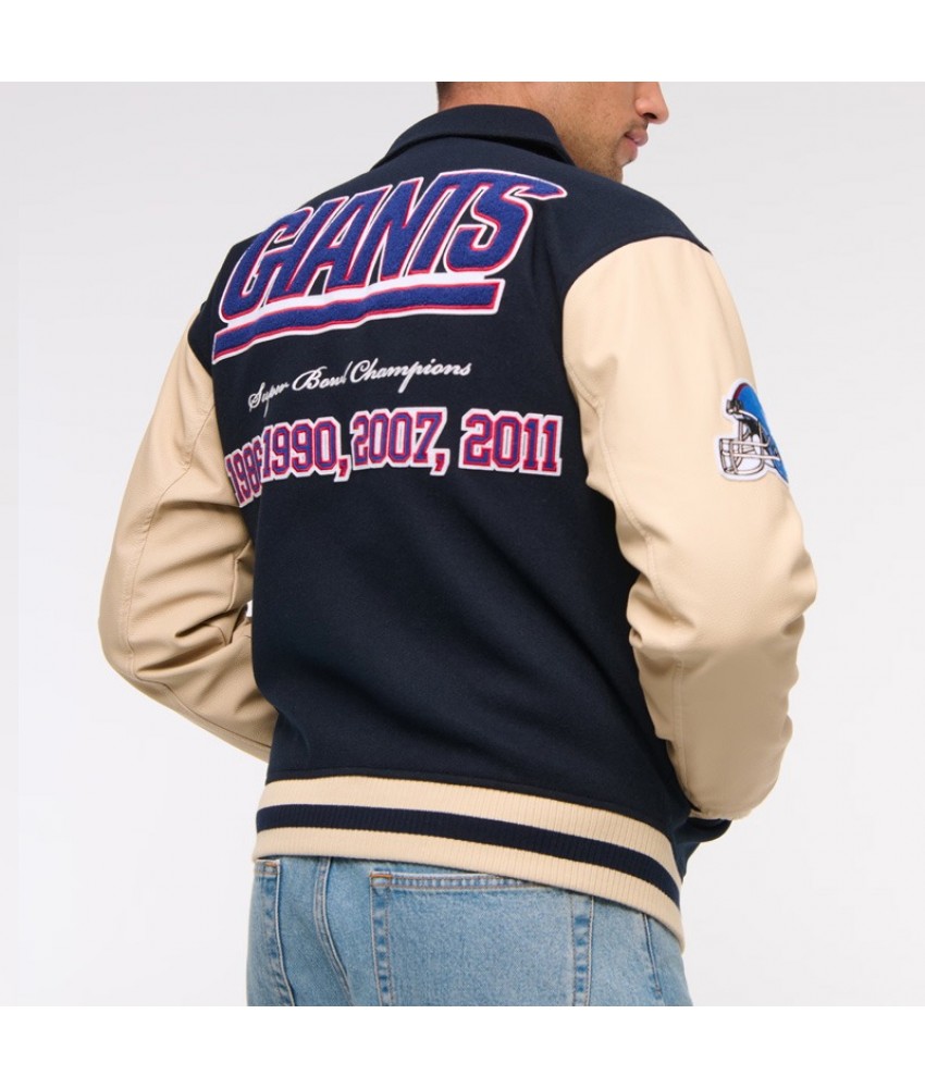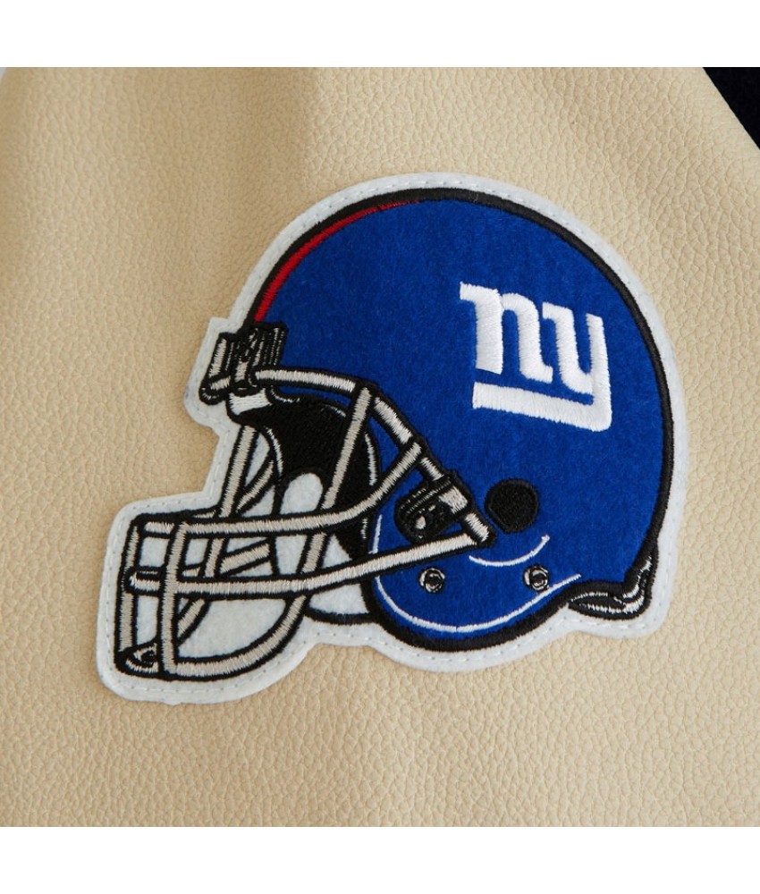 NY Giants Navy and Eggshell Varsity Bomber Jacket