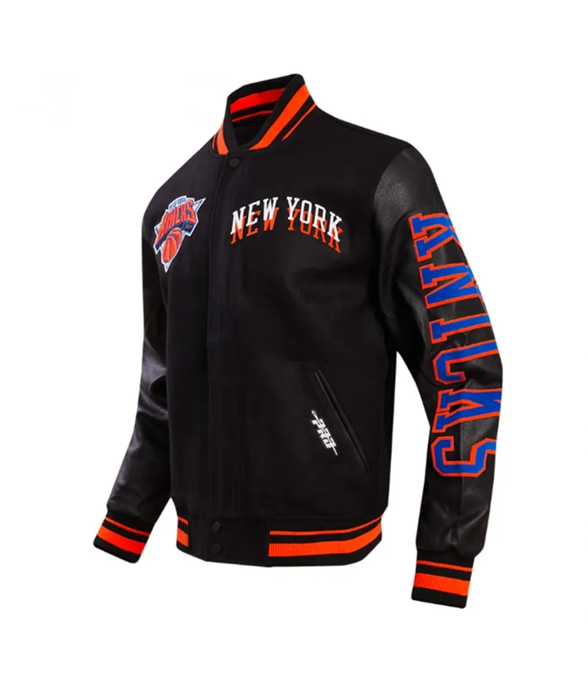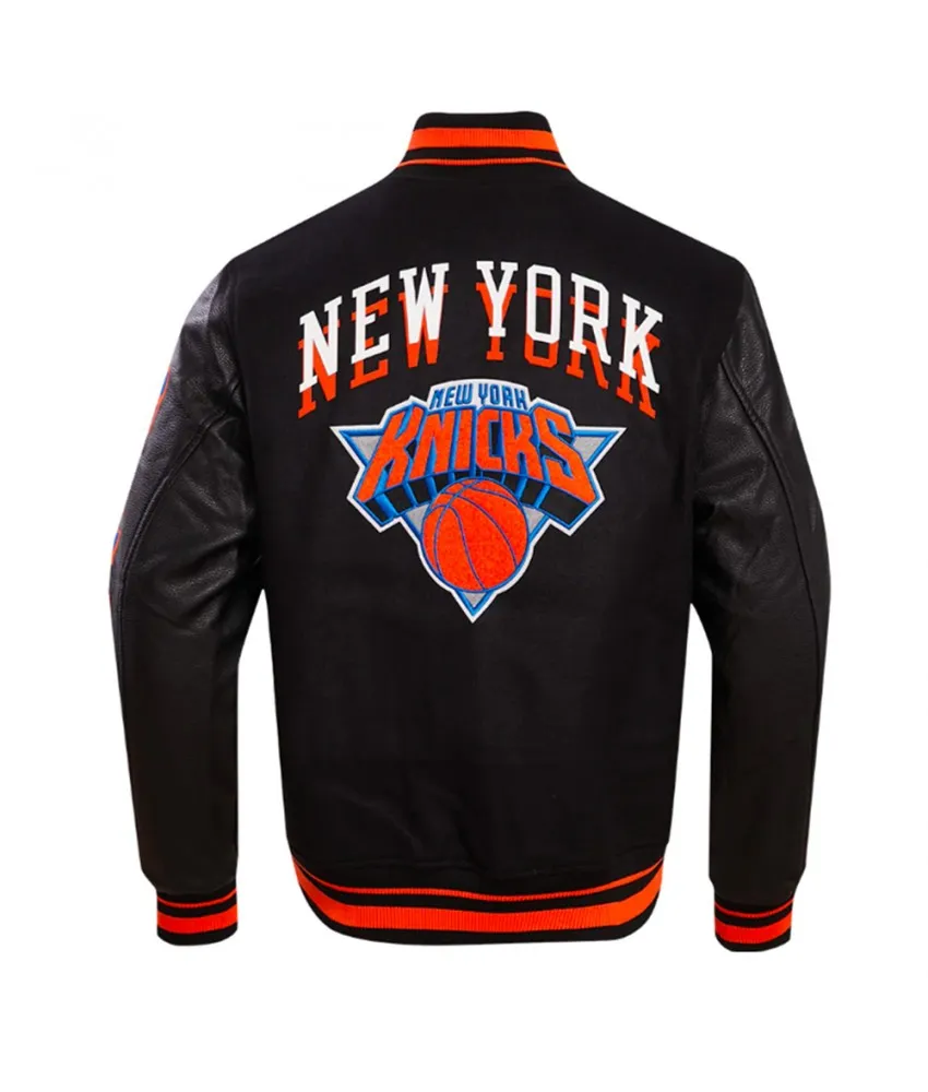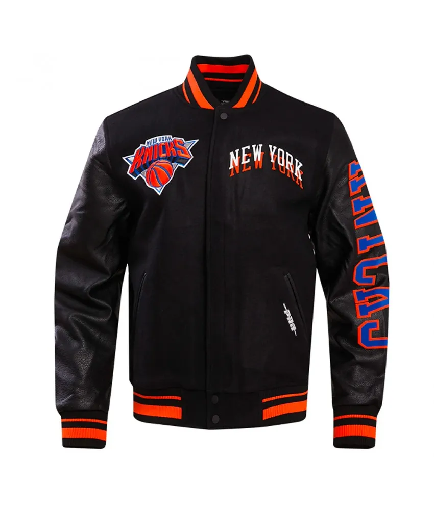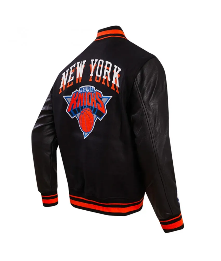 NY Knicks Chest Layered Classic Rib Varsity Jacket