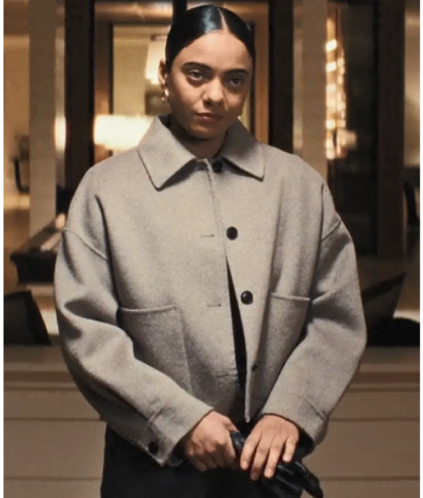 Whether you’re searching for “The Beast In Me Olivia Benitez jacket,” “Aleyse Shannon gray wool jacket,” or “Olivia Benitez TV series coat,” this piece checks all the boxes. Its neutral gray tone makes it versatile — ideal with jeans, dresses, or office wear. Fans of the show will instantly recognize it as the jacket worn by Aleyse Shannon as Olivia Benitez.