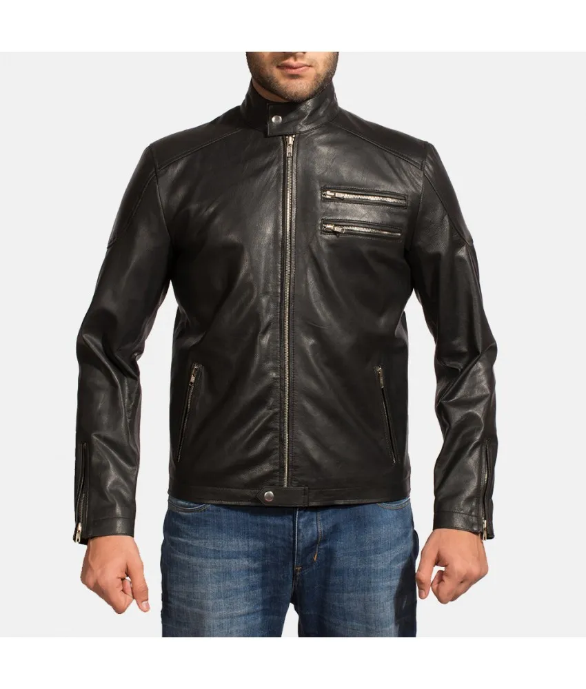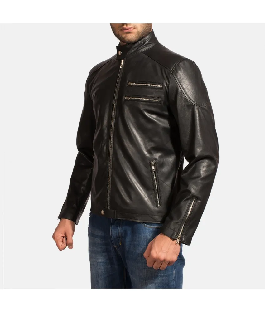 Onyx Black Leather Biker Jacket