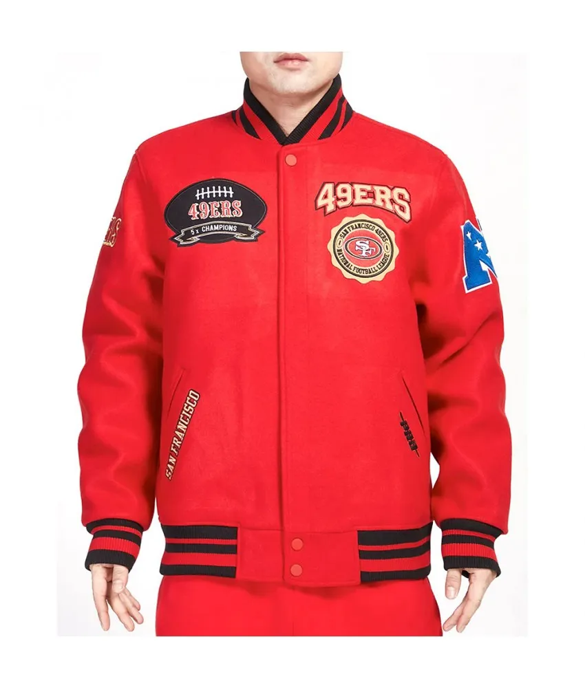 San Francisco 49ers Crest Emblem Rib Varsity Wool Jacket