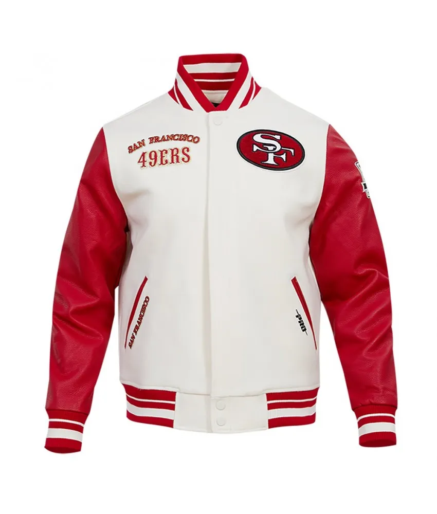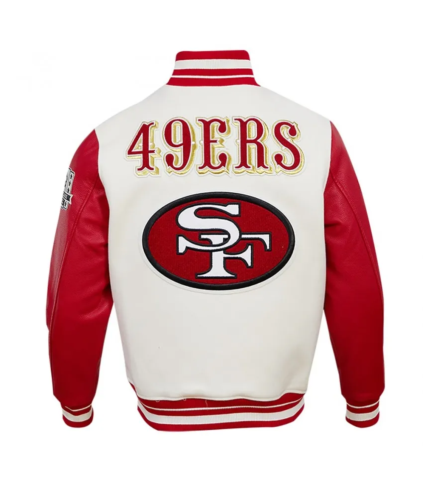 San Francisco 49ers Off White Wool And Red Leather Varsity Jacket