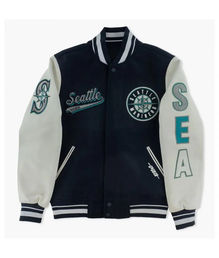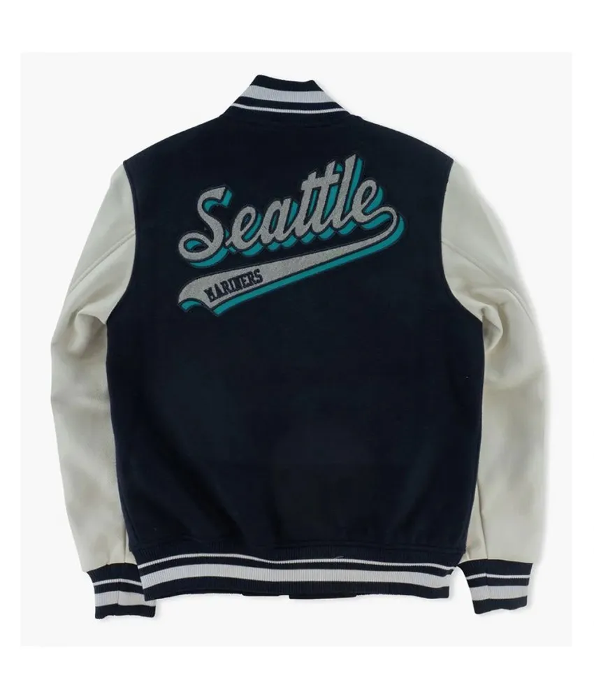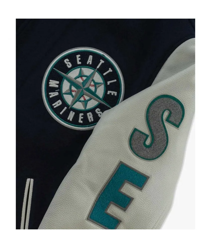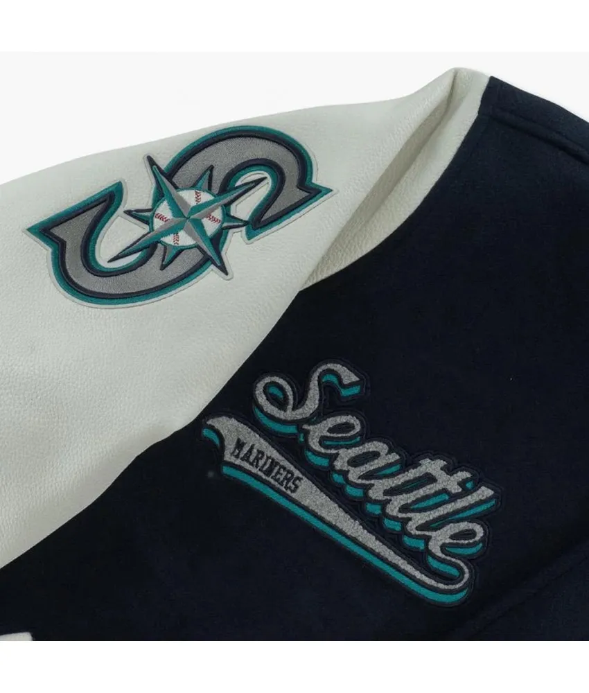 Detailed embroidery on chest and sleeves and Seattle Mariners written on back