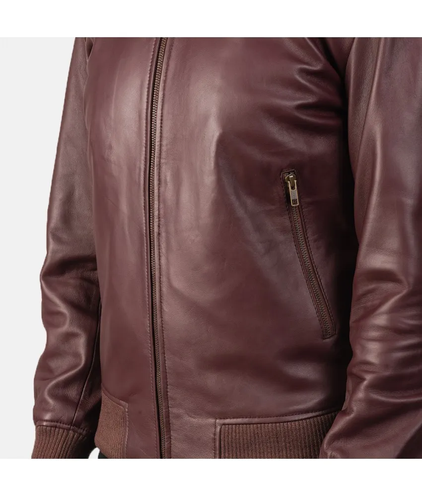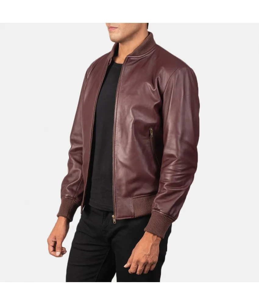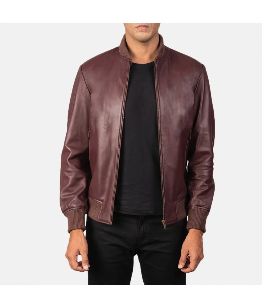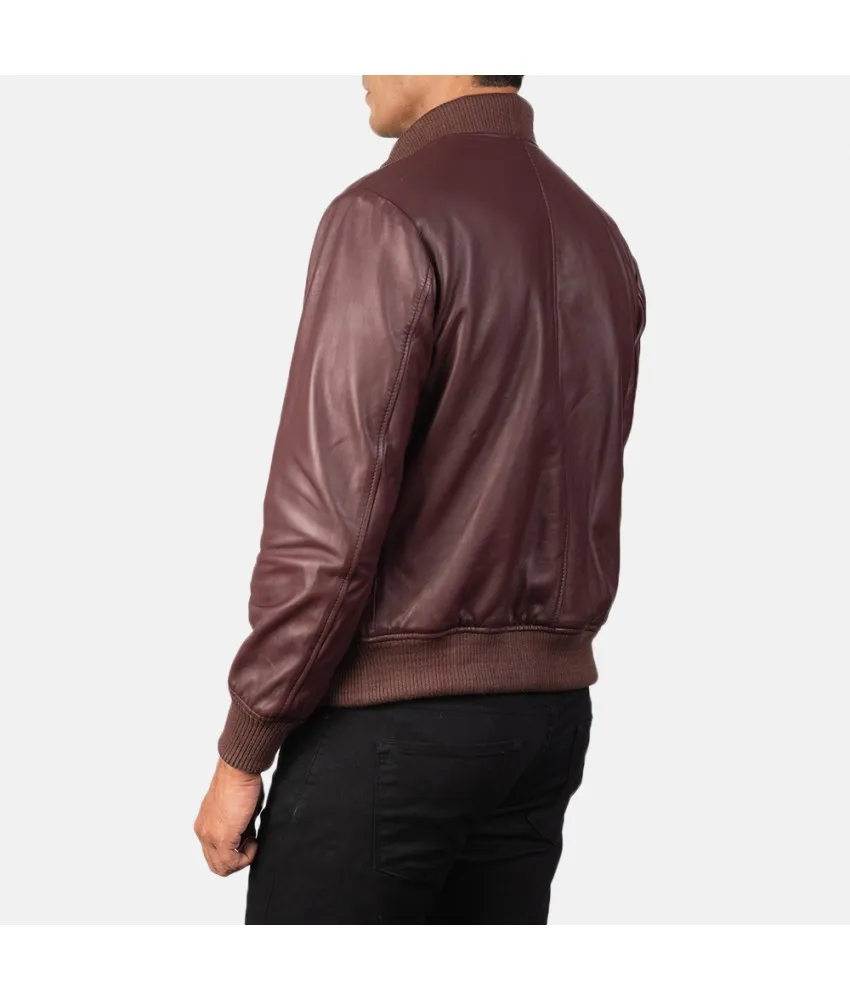 Shane Maroon Leather Bomber Jacket