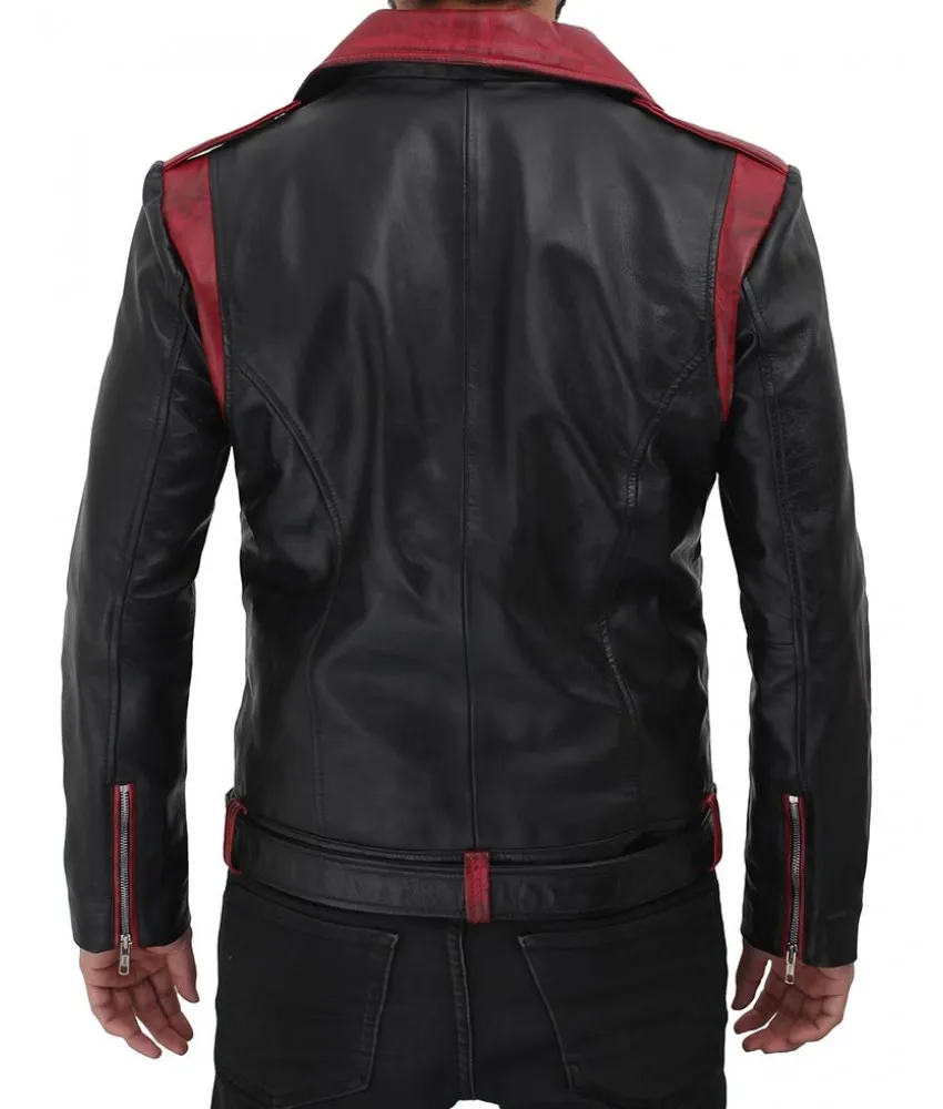 Jimmy Mens Black and Maroon Moto Jacket