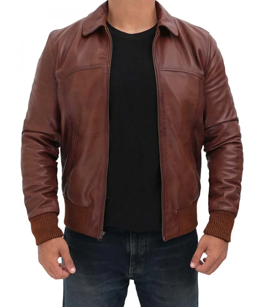 Add a versatile upgrade to your wardrobe with this timeless brown leather bomber jacket; it's made of real lambskin leather and lined with breathable viscose lining. The jacket also comprises durable ykk zip closure, shirt style collar, two outer pockets, and one inside pocket.