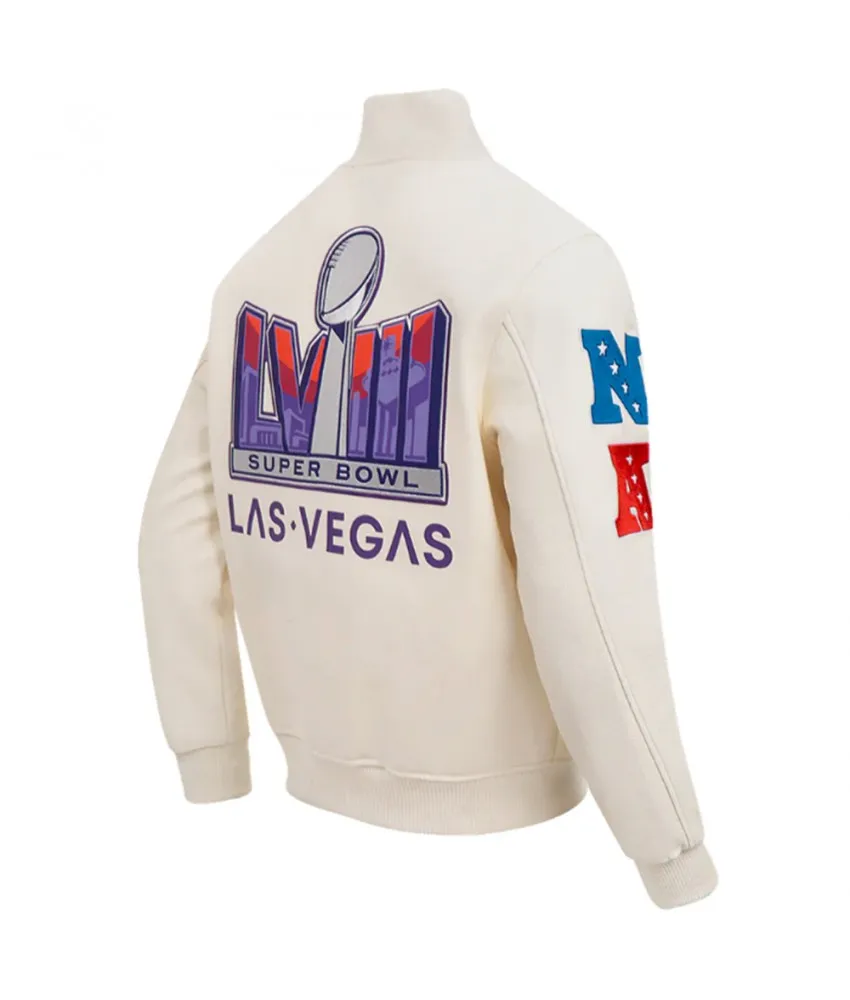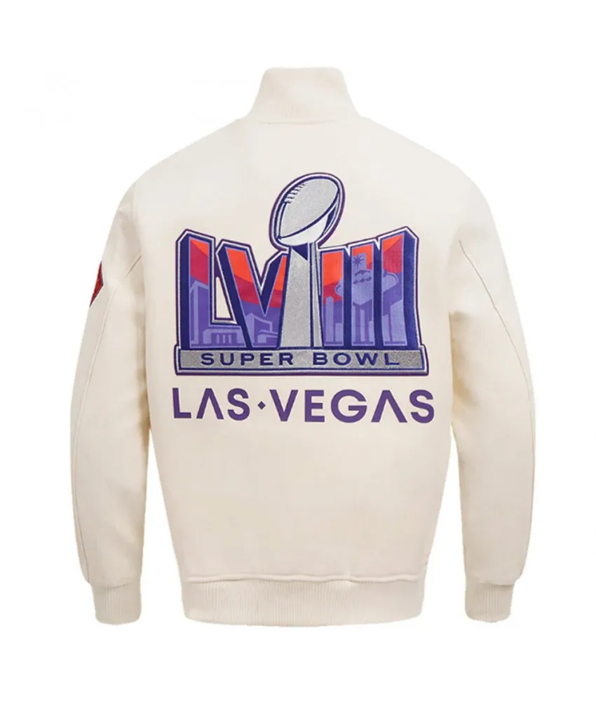 Logo: Las Vegas Superbowl LVIII distinctive logos is given at the front, back and on sleeves