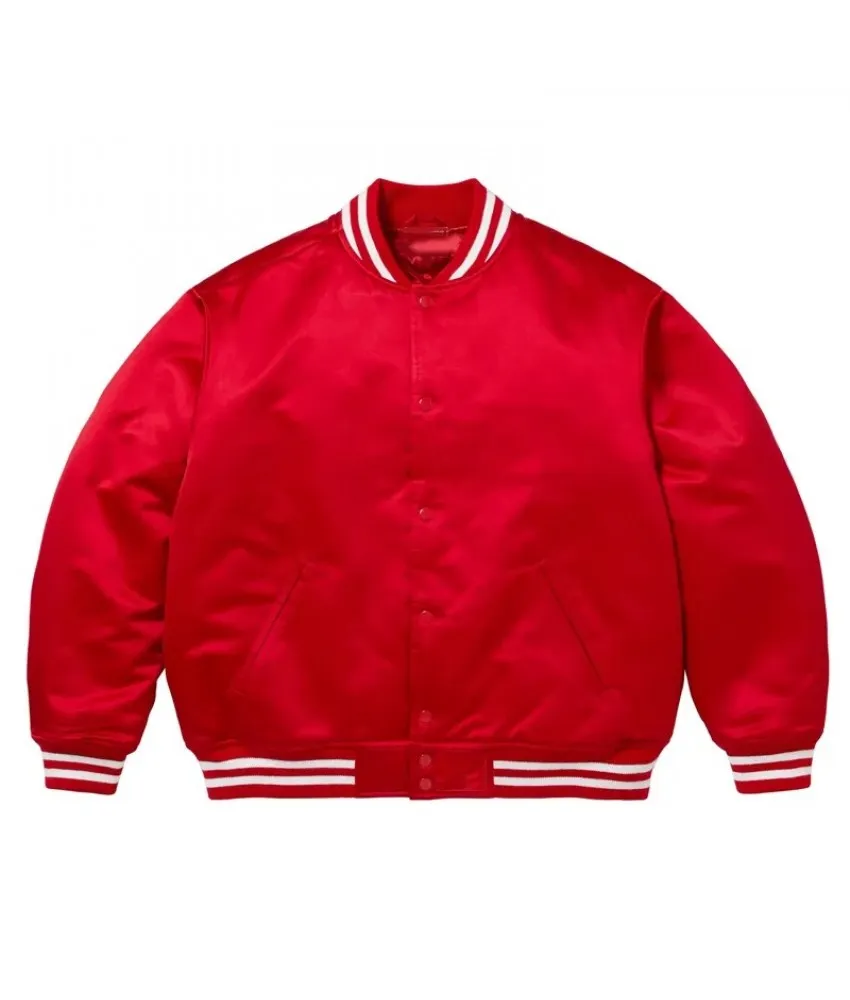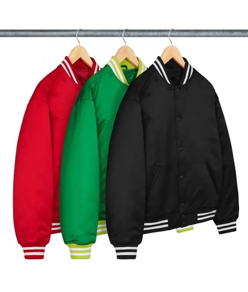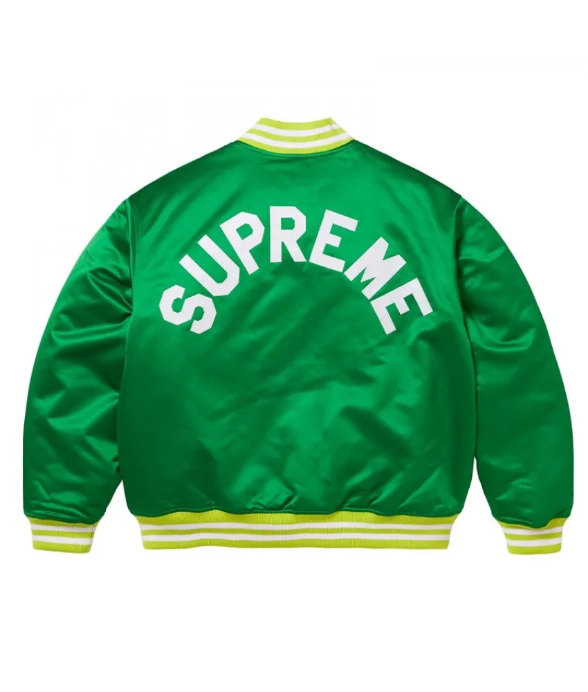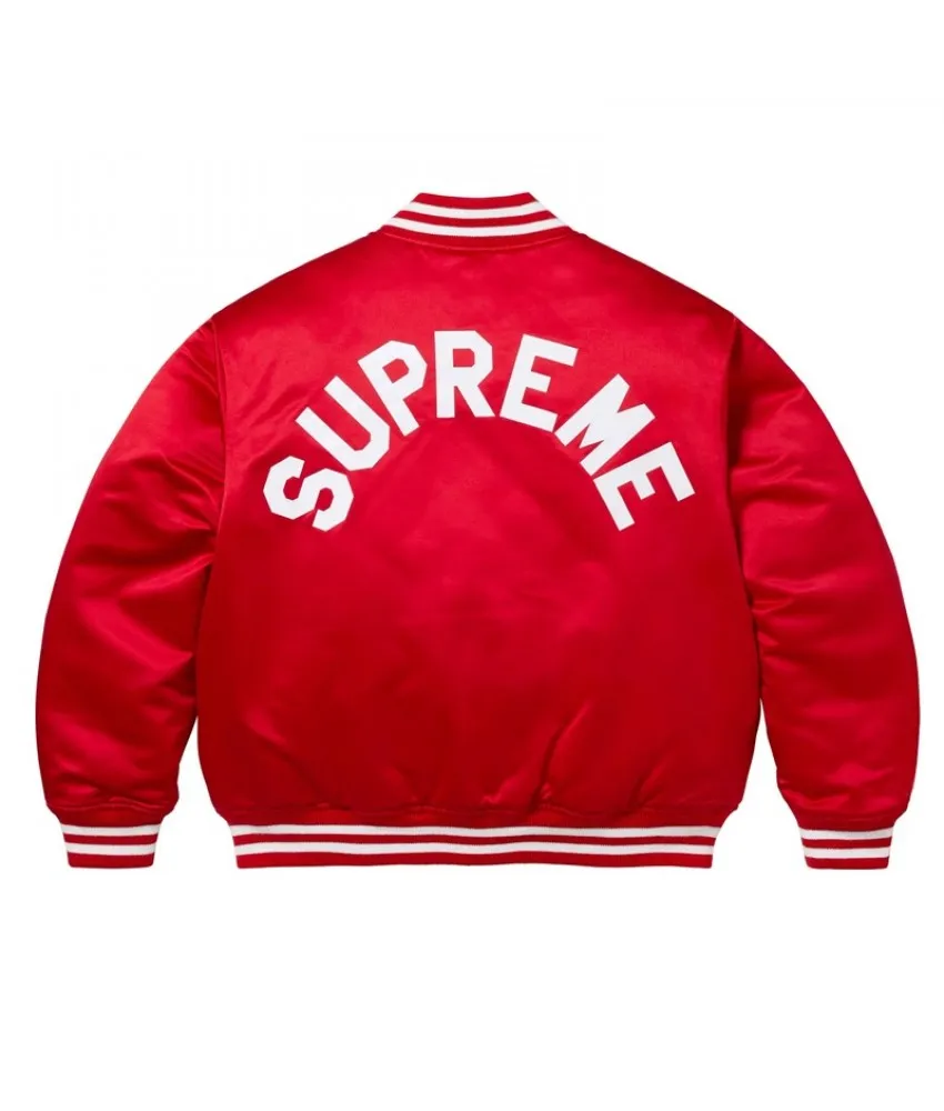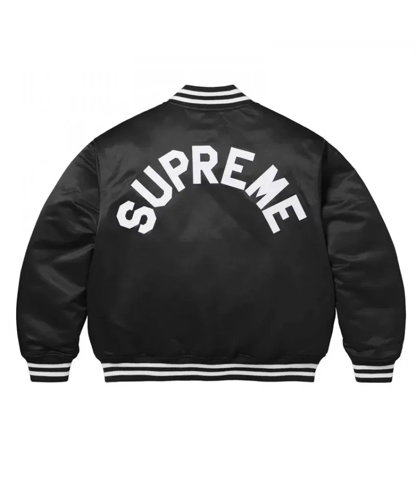Tags: supreme jacket satin jacket varsity jacket unisex jacket snap button jacket viscose lining jacket long sleeve jacket rib knit jacket fashion outerwear streetwear jacket full snap jacket Supreme Full-Snap Varsity Satin Jacket