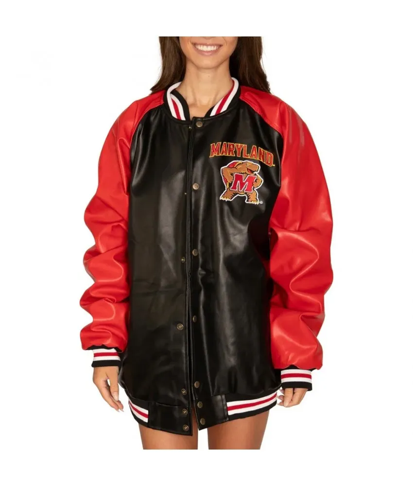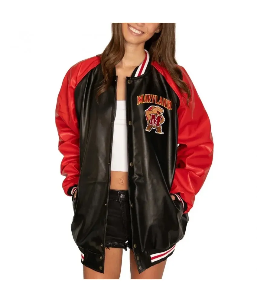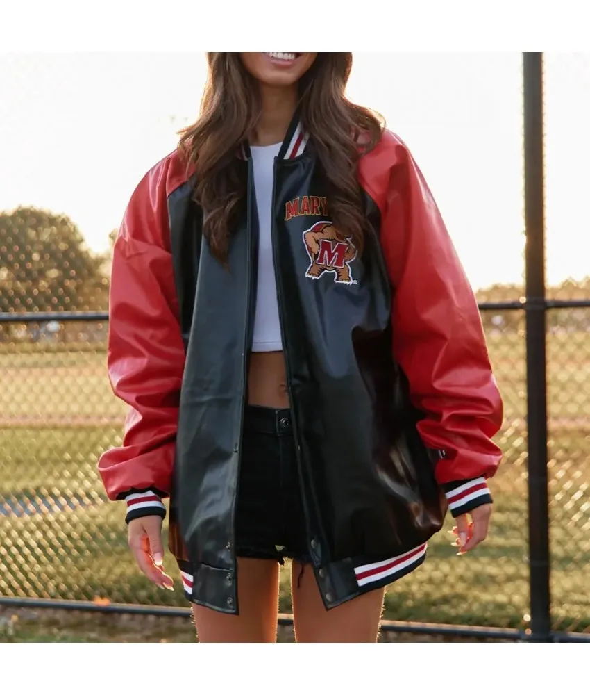 University of Maryland Red and Black Varsity Leather Jacket