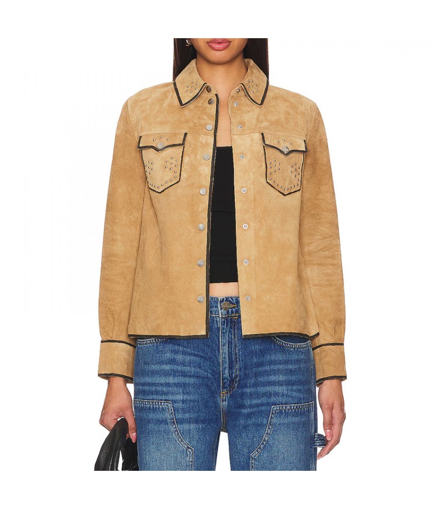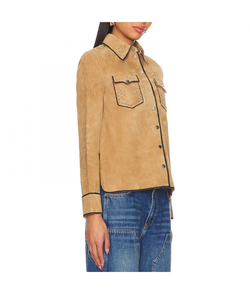 Victoria Moroles Ballard Martina Castro Brown Suede Leather Jacket