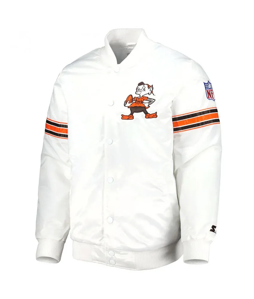 White Cleveland Browns The Power Forward Satin Jacket