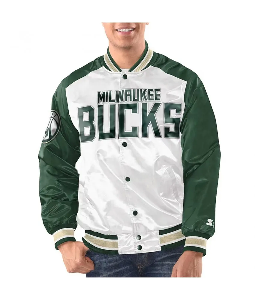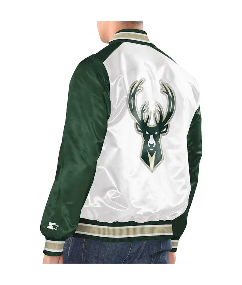 White/Hunter Green Milwaukee Bucks Renegade Varsity Satin Jacket