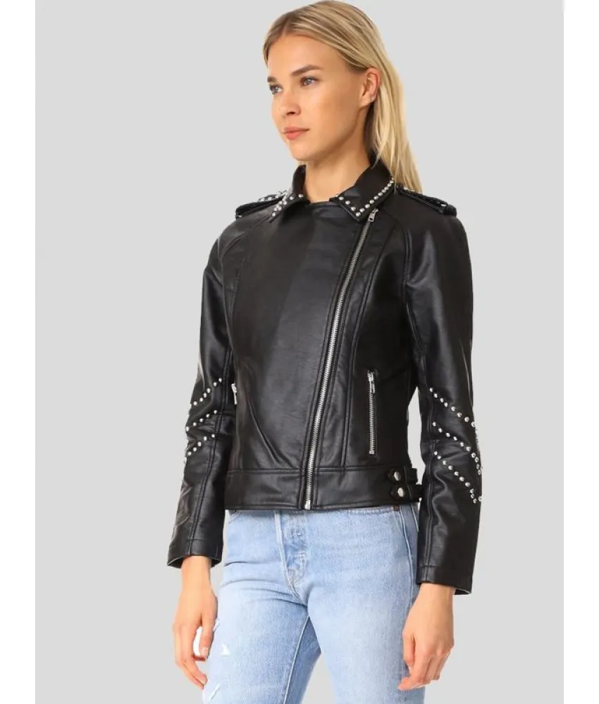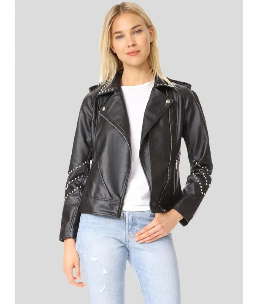 Women’s Studded Leather Motorcycle Jacket