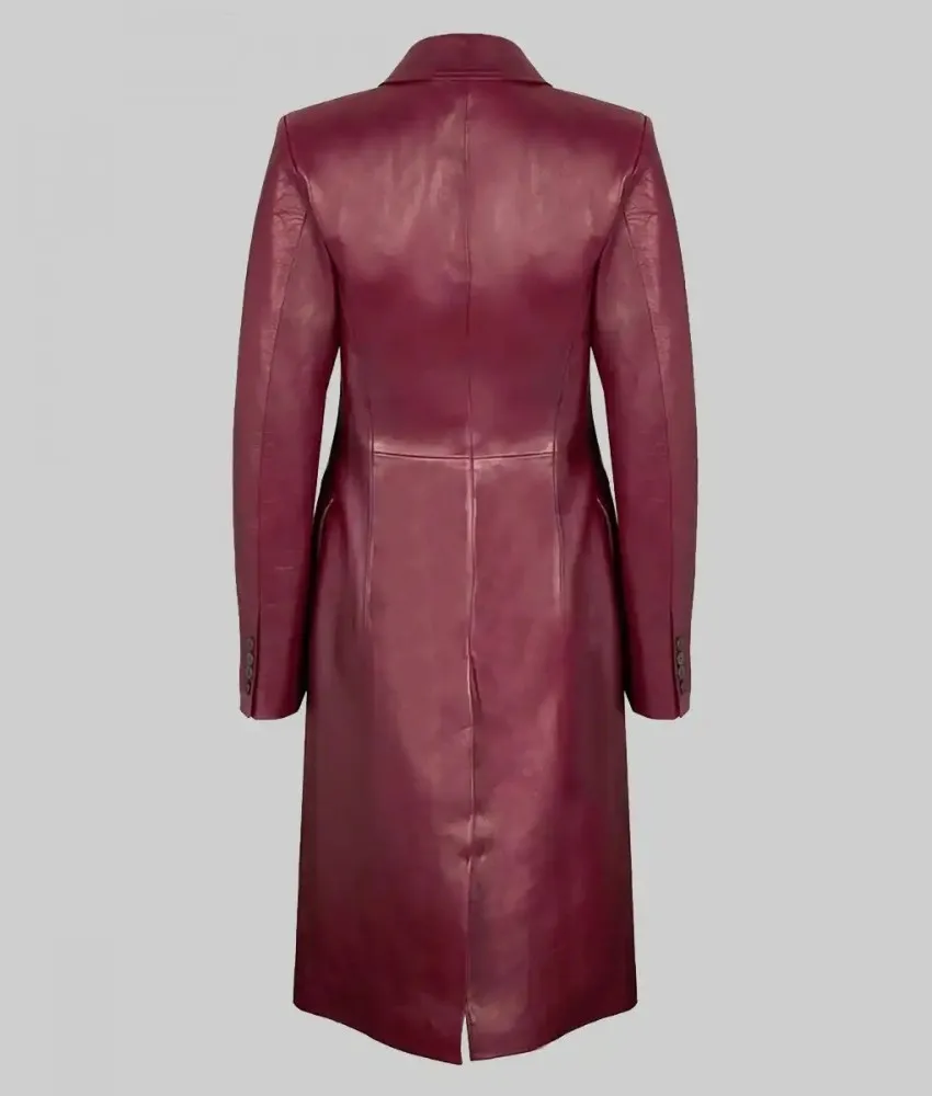Zendaya Burgundy Leather Trench Coat